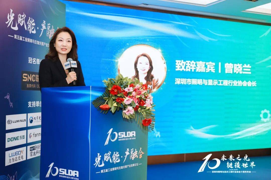 SLDA会长曾晓兰在开场致辞中,深情回顾了协会十年栉风沐雨的发展历程,并指出照明产业十年间实现了从传统光源到LED技术的全面迭代,从单一功能照明向智能照明、生物光照的跨界延伸,而这一系列跨越式发展的核心,离不开技术创新的持续驱动与产业链上下游的协同发力。她强调,当前全球科技革新与绿色发展深度融合,照明行业正从“功能满足”向“价值创造”跨越,希望以本次论坛为重要纽带,打破企业间的合作壁垒,推动行业同仁深化技术交流、拓展合作维度,让光技术深度融入工业生产、生物培育、医美健康等多元产业场景,在跨界融合中开辟新赛道、实现新突破,共同书写行业高质量发展的新篇章。